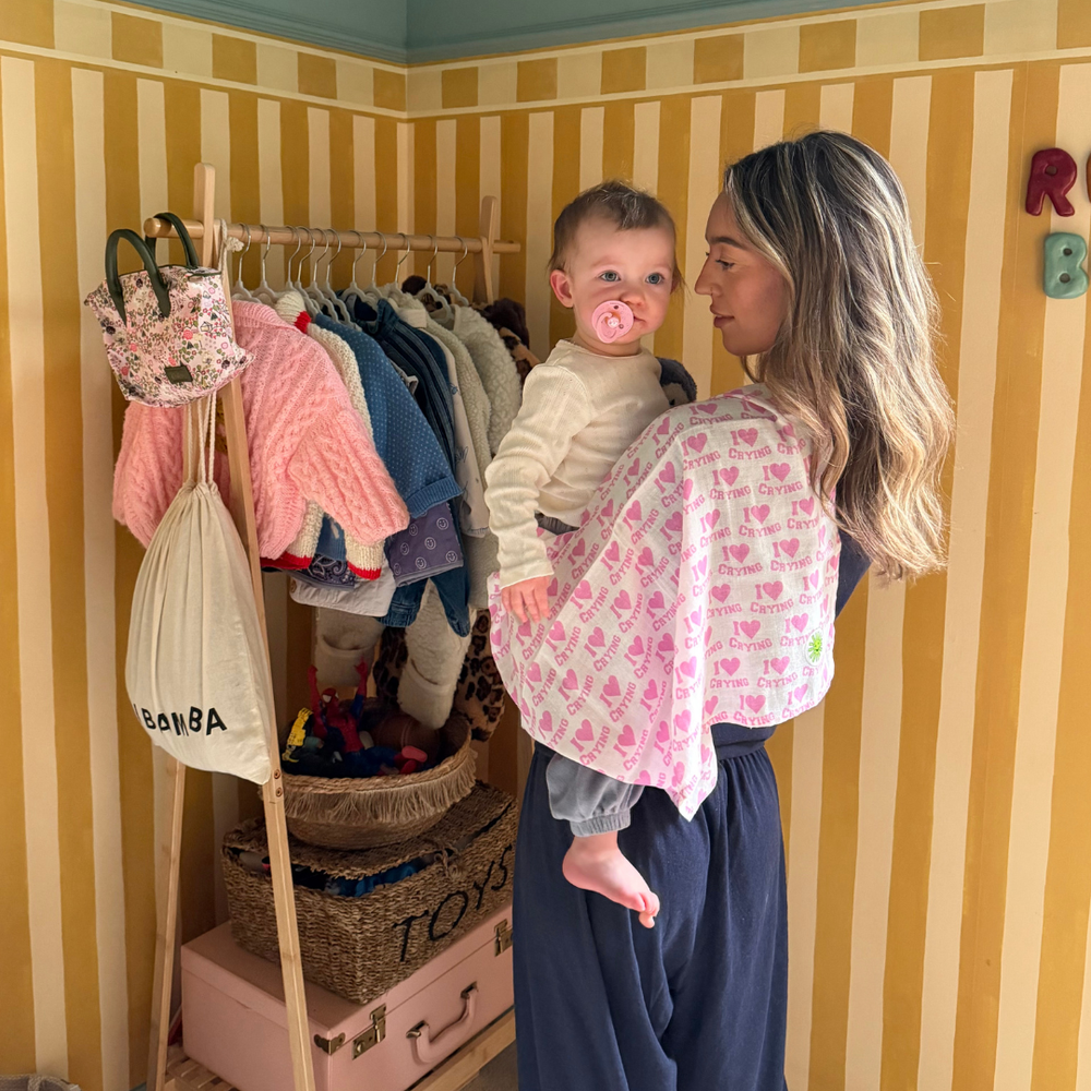 Lightweight, grab-and-go muslins made for feeds, shoulders, quick spills and life outside the house.