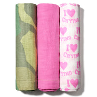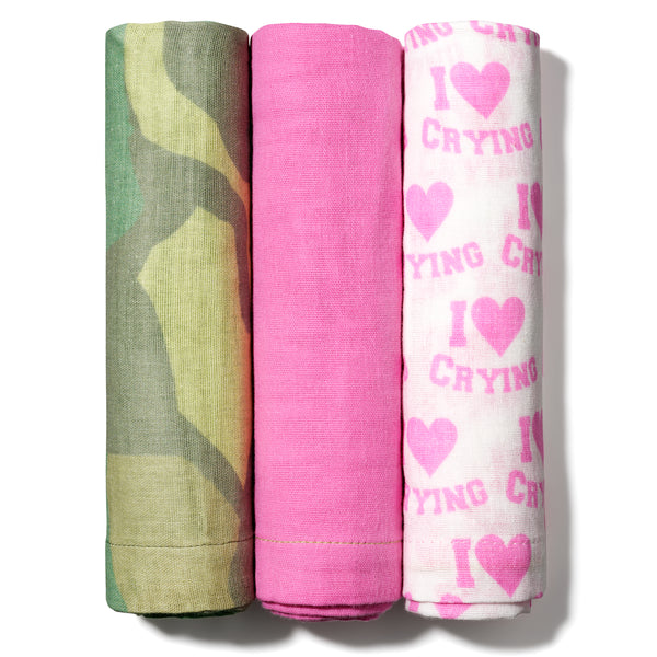 Meet The Giggle – full of energy, full of character, made to mix things up. With classic green camo, a playful bubblegum pink with sunny yellow embroidery, and the iconic I Love Crying print, this pack is as fun as it gets. Playful, unexpected, and made for everyone—because why stick to one style when you can have it all?
