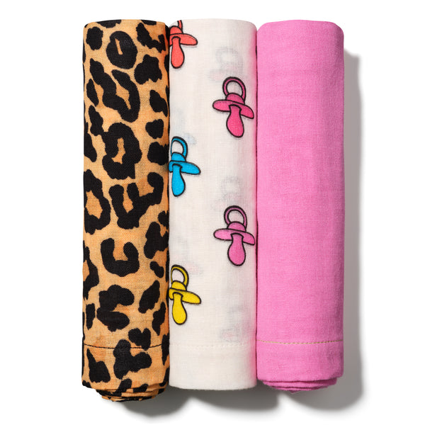 Meet The Peachy—fun, playful, and effortlessly cool. This trio features the fresh white dummy print, a timeless leopard, and the dreamiest shade of pink with sunshine yellow embroidery. A little bit sweet, a little bit classic, and always ready to go.